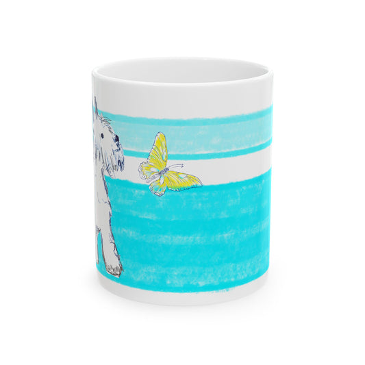 Mega Stripe Dogi Butterfly Flutter Ceramic Mug, (11oz, 15oz), Aqua Schnauzer