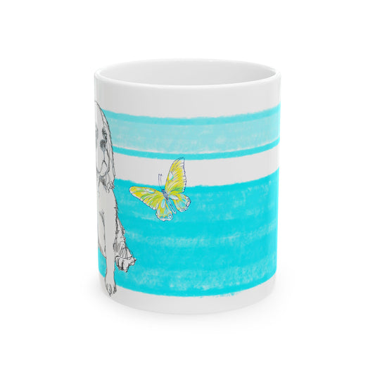 Mega Stripe Dogi Butterfly Flutter Ceramic Mug, (11oz, 15oz), Aqua Cocker Spaniel