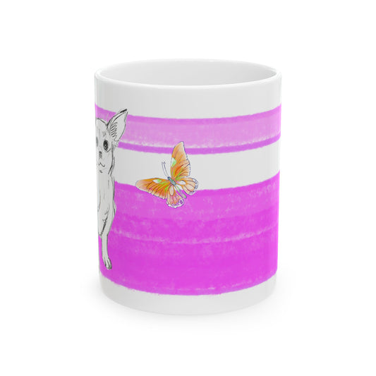 Mega Stripe Dogi Butterfly Flutter Ceramic Mug, (11oz, 15oz), Purplish Pink Chihuahua