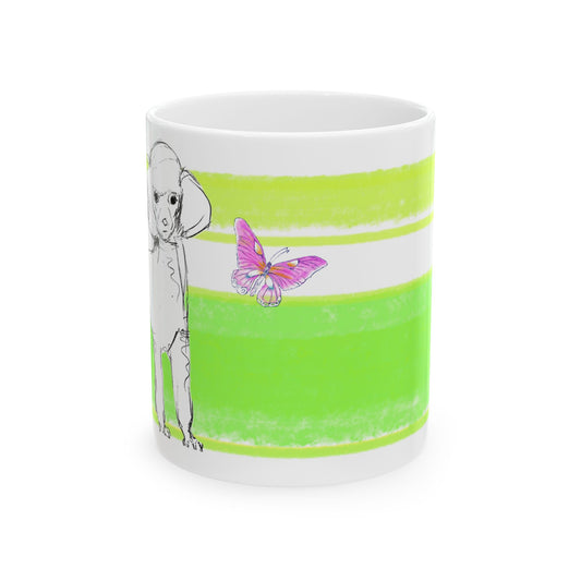Mega Stripe Dogi Butterfly Flutter Ceramic Mug, (11oz, 15oz), Lime Poodle