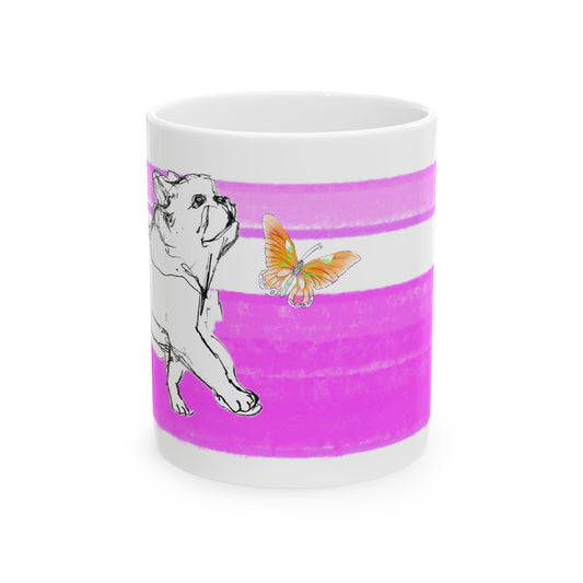 Mega Stripe Dogi Butterfly Flutter Ceramic Mug, (11oz, 15oz), Purplish Pink, Bulldog
