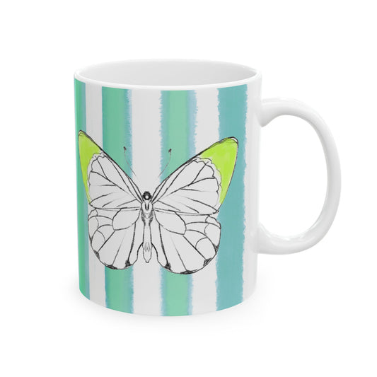 Mugs Butterfly Stripes Flutter in Aqua with Light Green Stripes