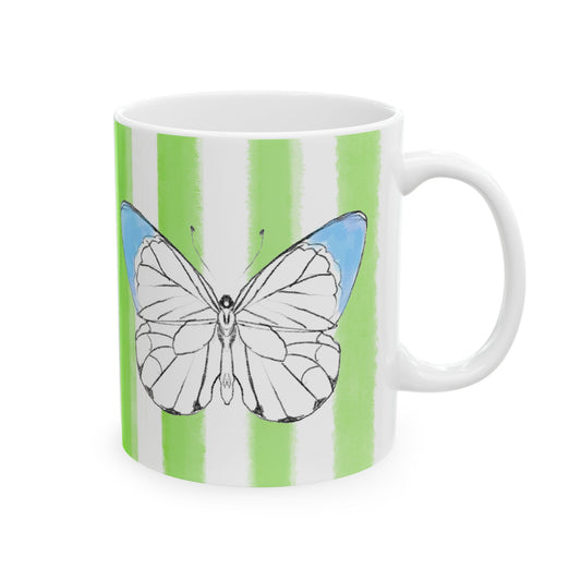 Mugs Butterfly Stripes Flutter in Acid Green with Aqua Green Stripes