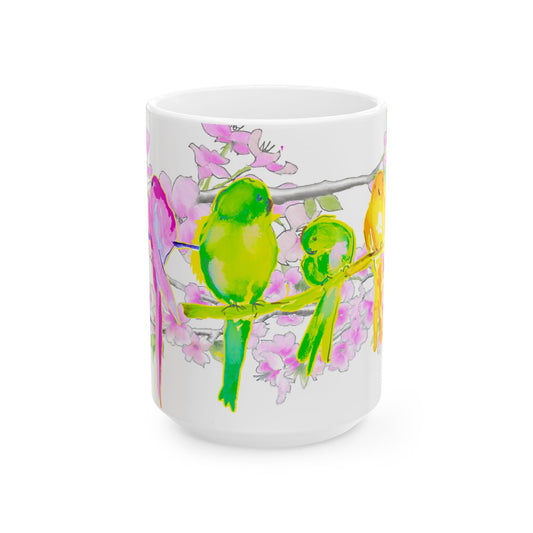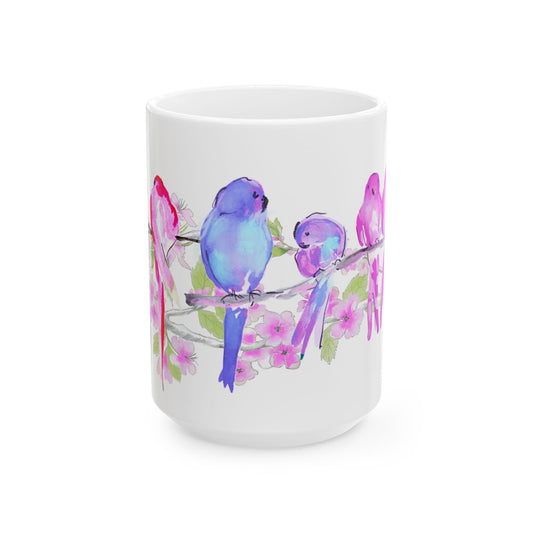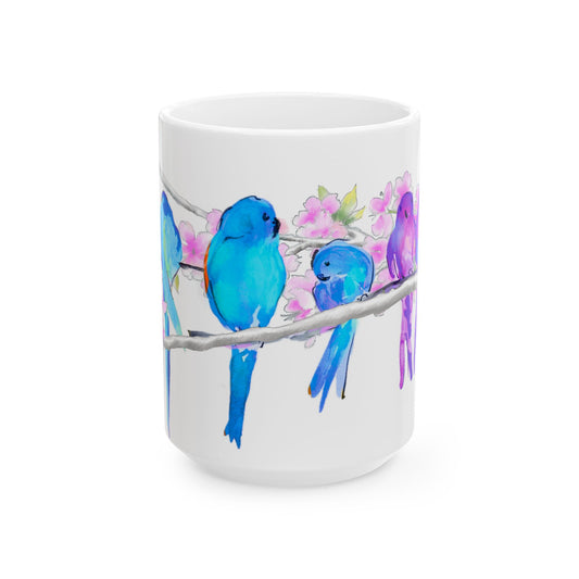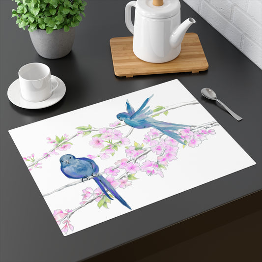 Blossoms & Birds In Aqua Blue Placemat, 1pc (18" × 14"). Cotton. Creamy White Background, #7 Left Side of the Table
