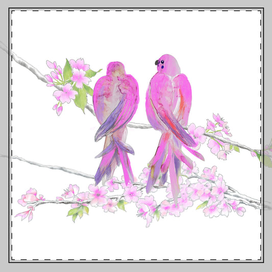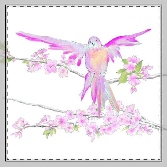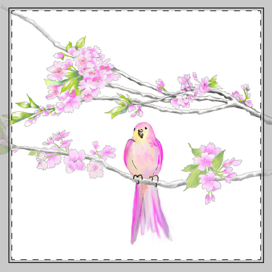 Blossoms & Birds Cotton Twill Napkin Pink, Background Fabric Creamy White