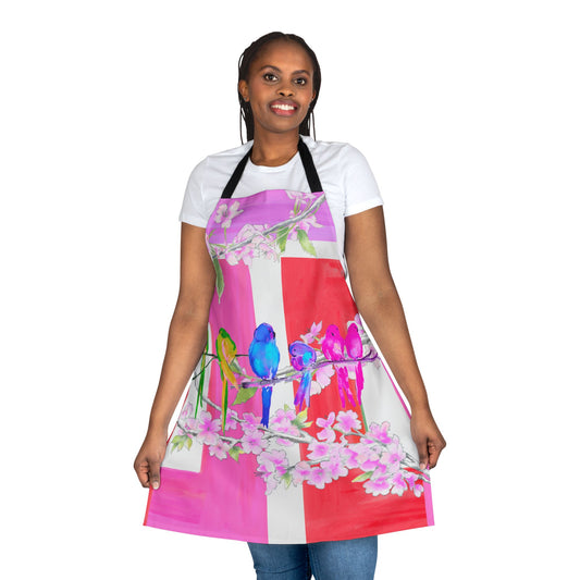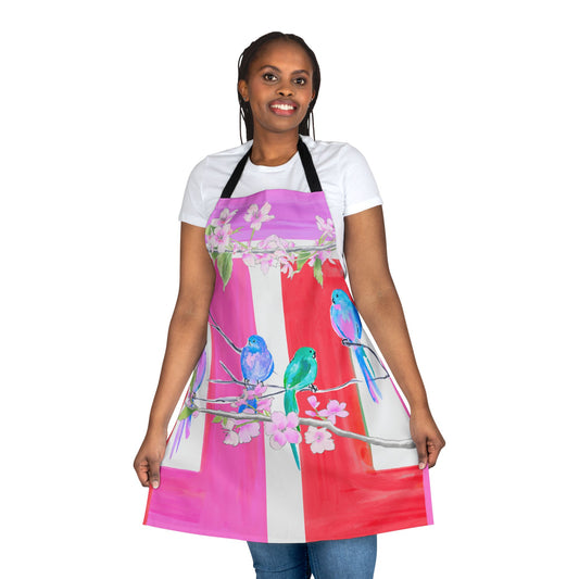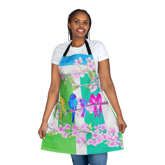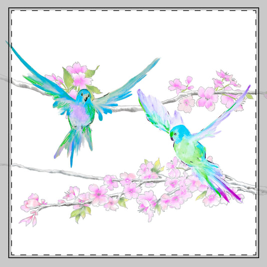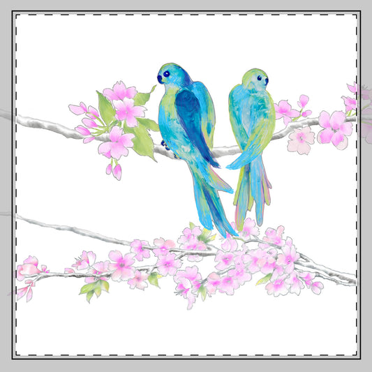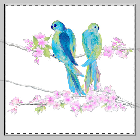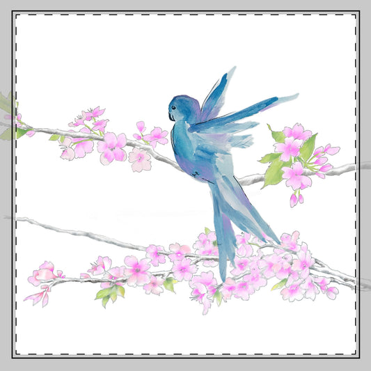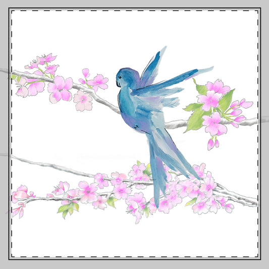 Blossoms & Birds in Blue Poly Twill Napkin , Background fabric Bright White