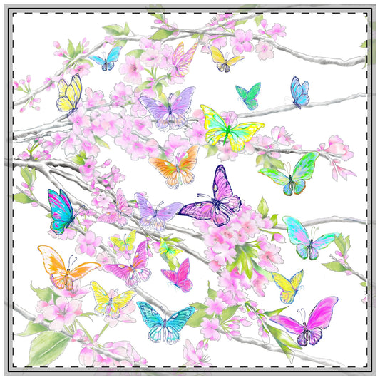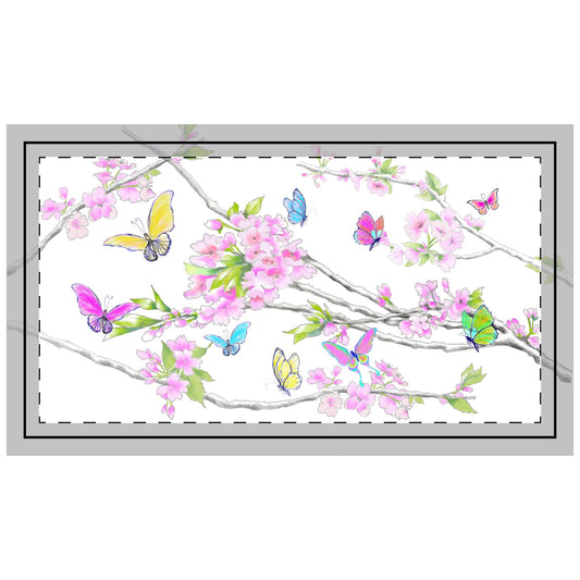 Blossom Whirl Quilted Coverlet Butterflies & Cherry Blossoms