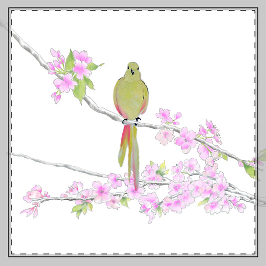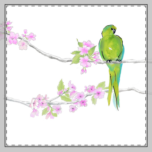 Blossoms & Birds Cotton Twill Napkin Green, Background Fabric Creamy White