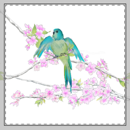 Blossoms & Birds Cotton Twill Napkin Aqua, Background Fabric Creamy White