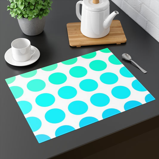 Polka Dot Joy Poly Quilted Placemat, Aqua/Blue, Bright White Fabric Background