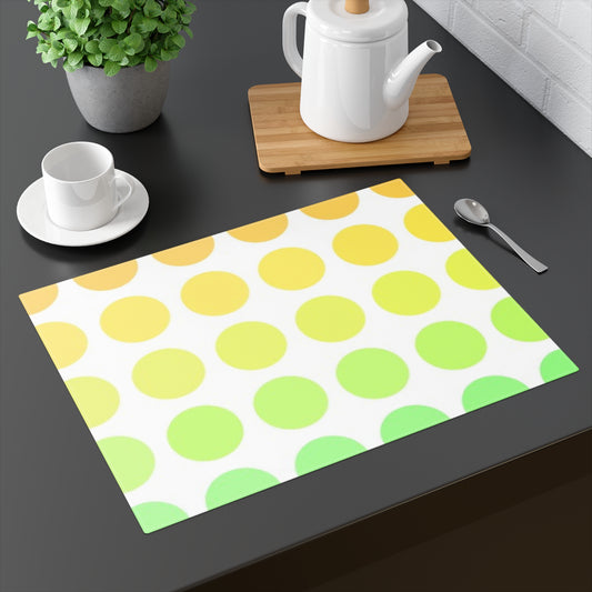 Polka Dot Joy Poly Quilted Placemat, Yellow/Green, Bright White Fabric Background