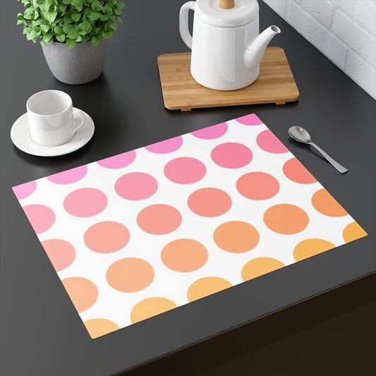 Polka Dot Joy Cotton Twill Placemat, Pink/Orange, Creamy White Fabric Background