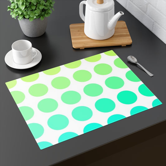Polka Dot Joy Poly Quilted Placemat, Green/Aqua, Bright White Fabric Background