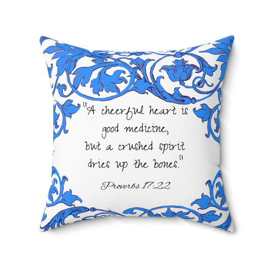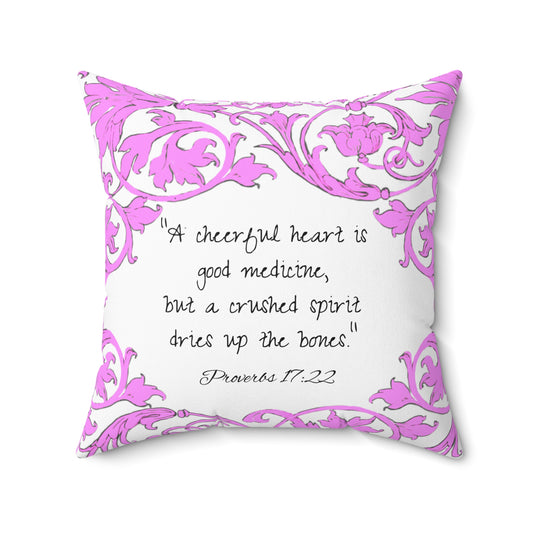 Scrollwork Polyester Square Pillow "A cheerful heart..."