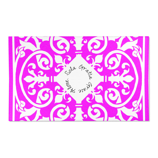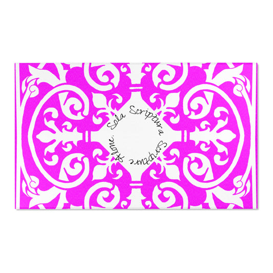 Scrollwork Indoor/Outdoor Rug Raspberry "Sola Scriptura..."