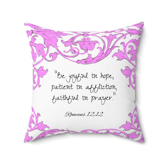 Scrollwork Polyester Square Pillow "Be Joyful..."