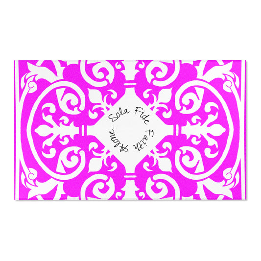 Scrollwork Indoor/Outdoor Rug Raspberry "Sola Fide..."
