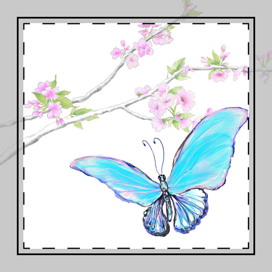 Butterfly Blossom Glide Cotton Twill Napkin in Blue, Creamier White, #7