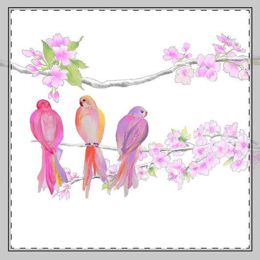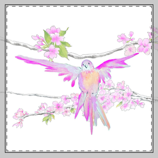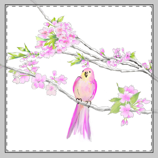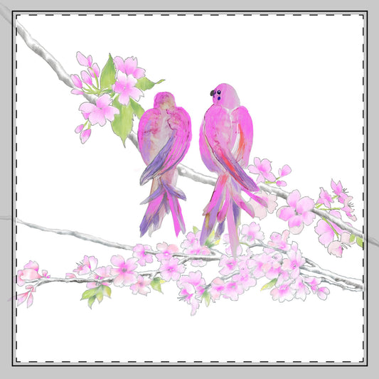 Blossoms & Birds in Pink Poly Twill Napkin , Background color Bright White