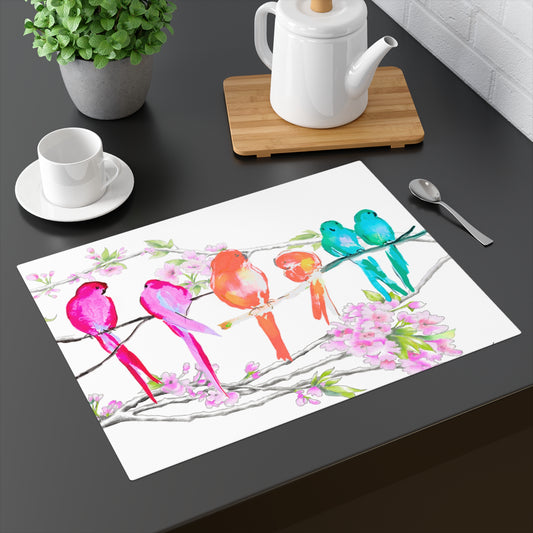 Blossoms & Birds In Pink, Orange, Aqua Placemat, 1pc (18" × 14") cotton (Creamy White)