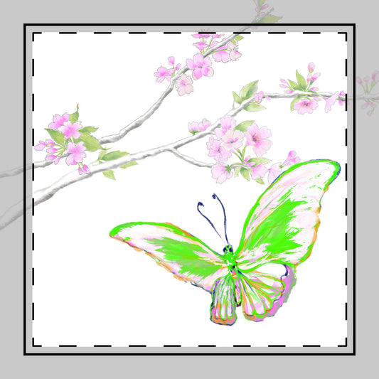 Butterfly Blossom Glide Cotton Twill Napkin in Green, Creamier White #9