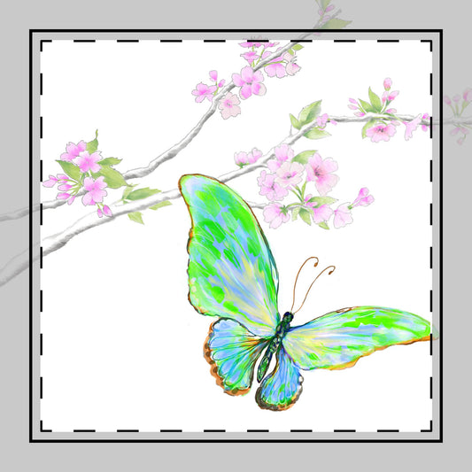 Butterfly Blossom Glide Cotton Twill Napkin in Green and Blue , Creamier White, #6