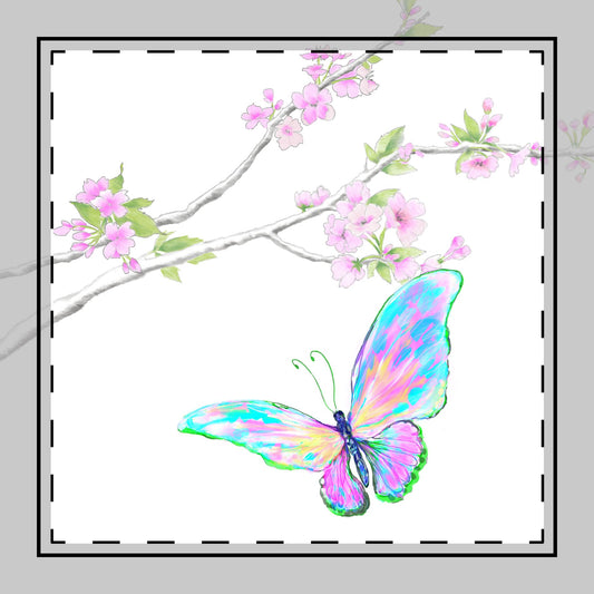 Butterfly Blossom Glide Cotton Twill Napkin in Blue/Pink, Creamier White, #1