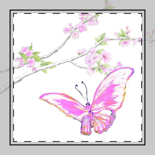 Butterfly Blossom Glide Cotton Twill Napkin in Pink, Creamier White Background, #3