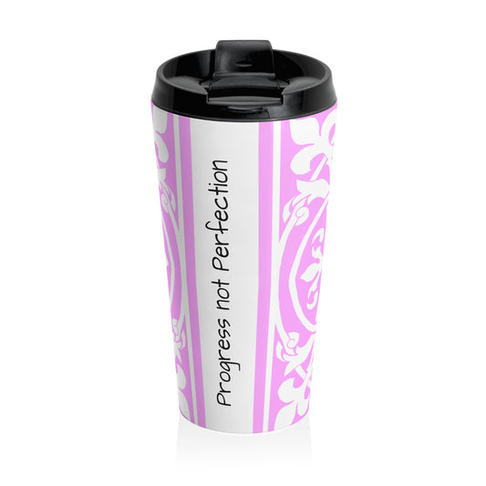 Scrollwork Stainless Steel Travel Mug "Progress not perfection"