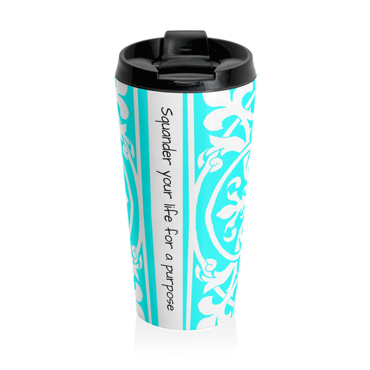 Scrollwork Stainless Steel Travel Mug "Squander your life for a purpose"
