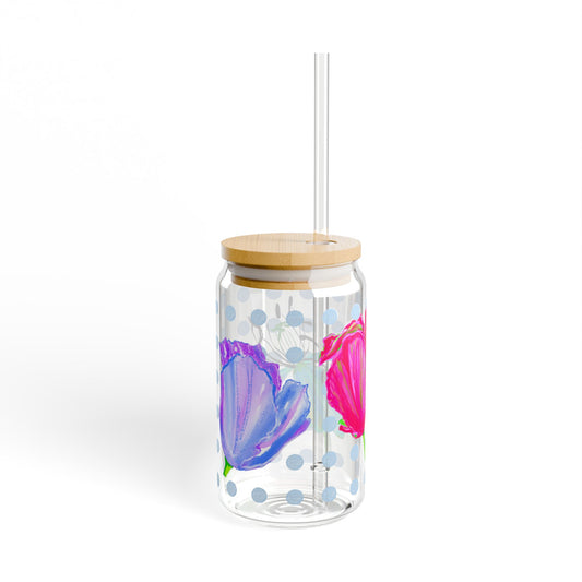 Vibrant Tulips Sipper Glass, 16oz, Raspberry, Aqua . Purple
