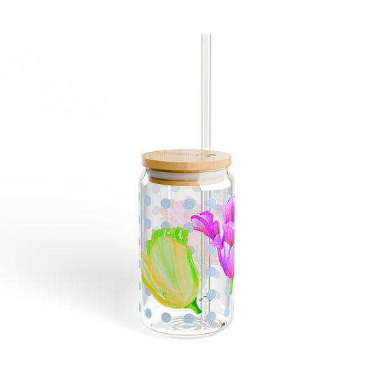 Vibrant Tulips Sipper Glass, 16oz, Lilac, Yellow, Red