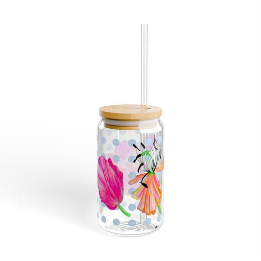 Vibrant Tulips Sipper Glass, 16oz, Raspberry, Orange