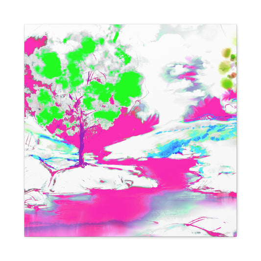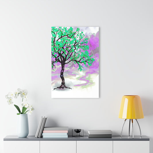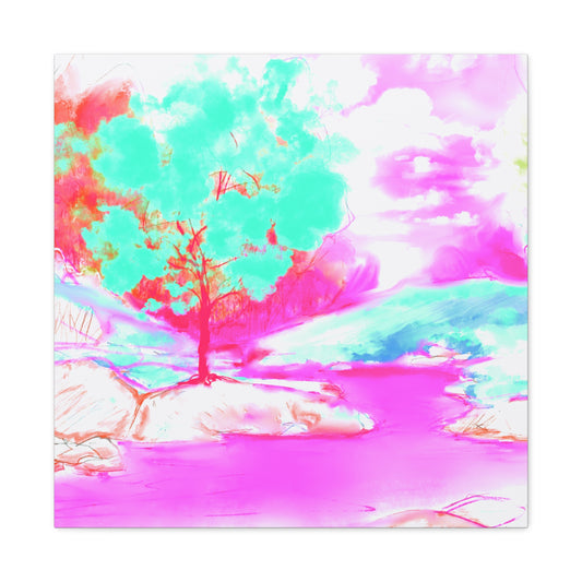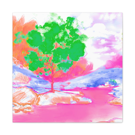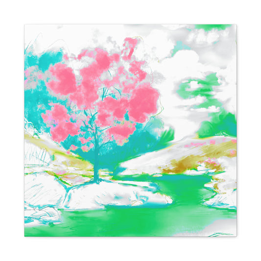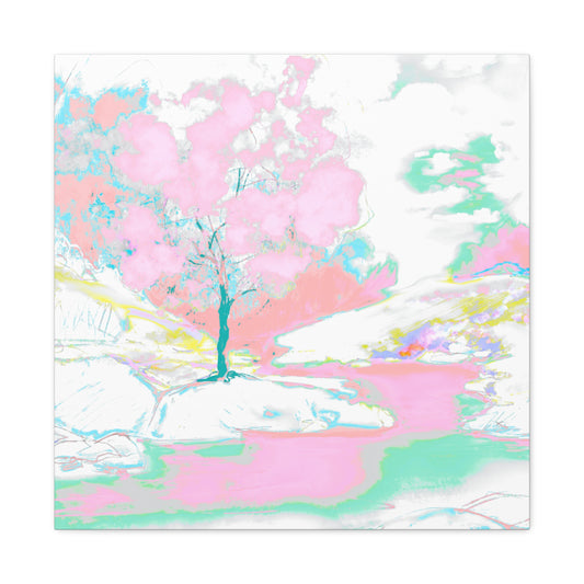 Wall Art Joyful Landscape Matte Canvas, Stretched, 1.25" Light Pink. Mint Green