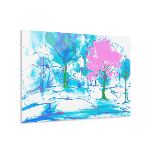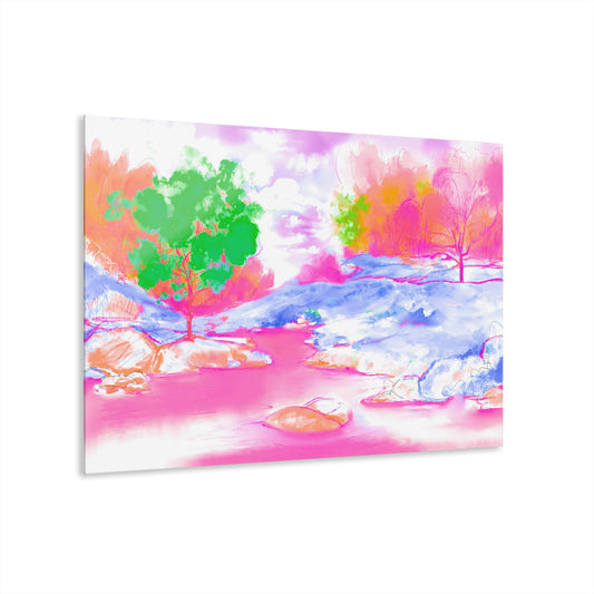 Wall Art Joyful Landscapes Acrylic Print in Blue and Pink (French Cleat Hanging)
