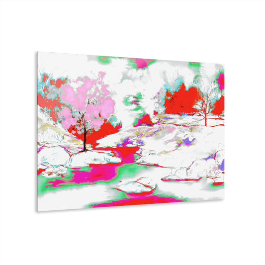 Wall Art Joyful Landscapes Acrylic Print in Red and Pink (French Cleat Hanging)