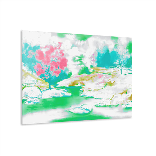 Wall Art Joyful Landscapes Acrylic Print in Pink and Green (French Cleat Hanging)