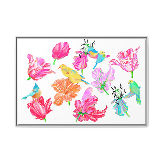 Wall Art Vibrant Tulips Matte Canvas, Frame with birds