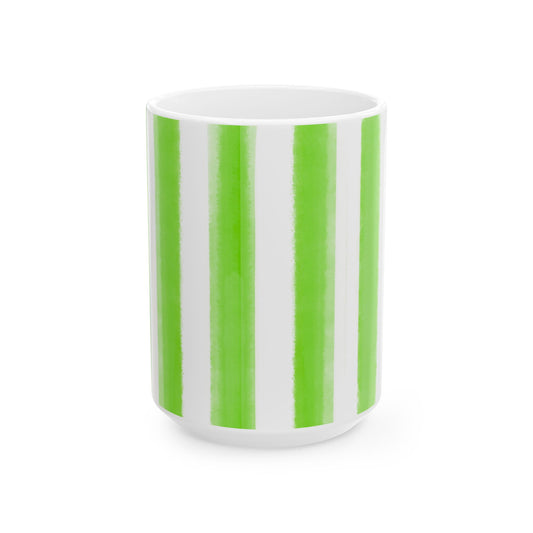 Watercolor Stripes Ceramic Mug in Light Green, 11oz