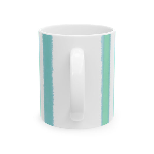 Watercolor Stripe Ceramic Mug in Aqua Green, 11oz