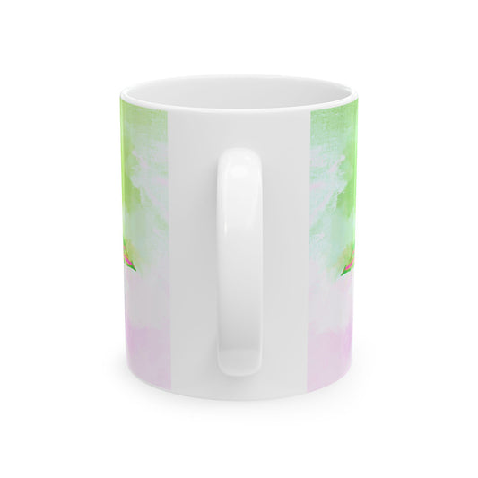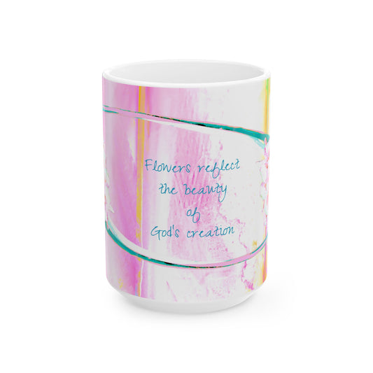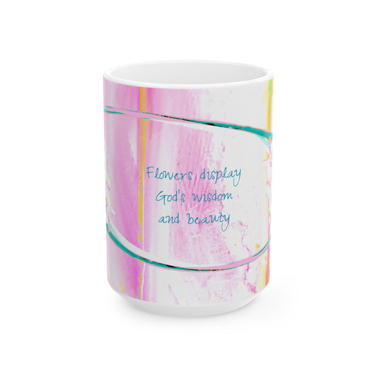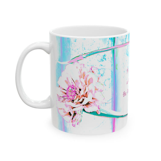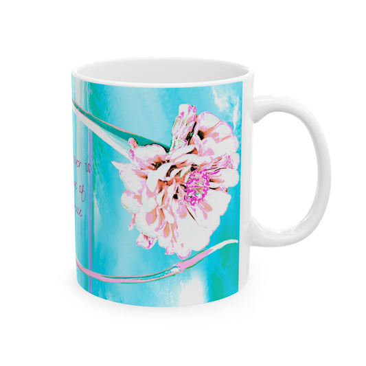 Zinnia Ceramic Mug Aqua Raspberry "Flowers bloom as emblems of God's providence"