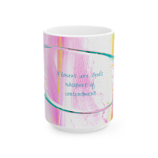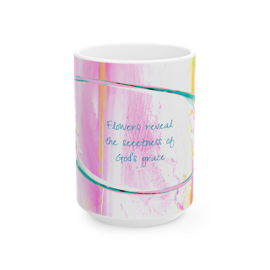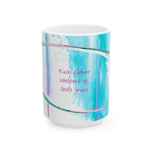 Zinnia Ceramic Mug Aqua Raspberry "Every Flower is a message of God's grace"