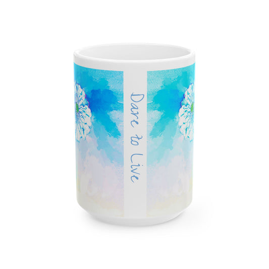 Zinnia Color Splash Mug Aqua “Dare to Live”