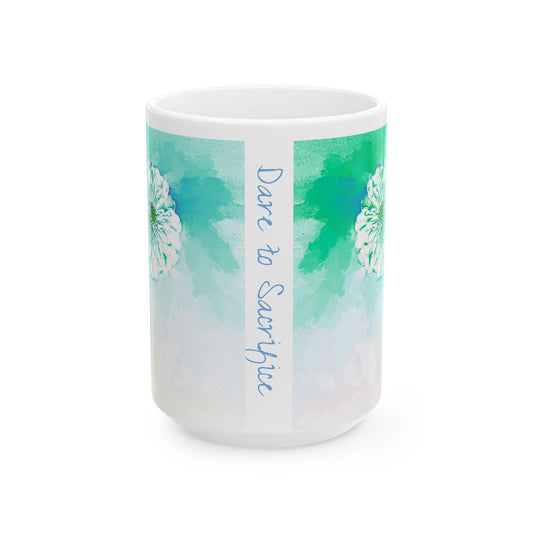 Zinnia Color Splash Mug Blue Green “Dare to Sacrifice”