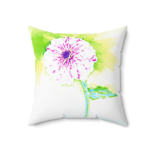 Zinnia Color Splash Spun Polyester Square Pillow, Yellow. Green, Raspberry,