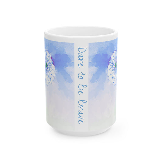 Zinnia Color Splash Mug Blue “Dare to Be Brave”