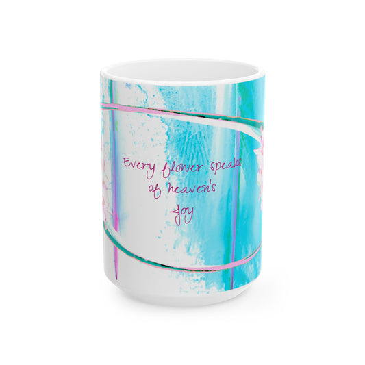 Zinnia Ceramic Mug Aqua Raspberry "Every flower speaks of heaven's joy"