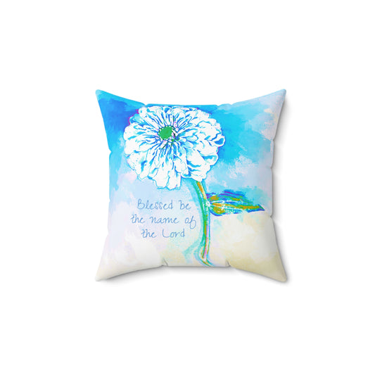 Zinnia Quiet Reflection Spun Polyester Square Pillow in Blue "Blessed be the name of the Lord" (double sided print) (20" x 20")