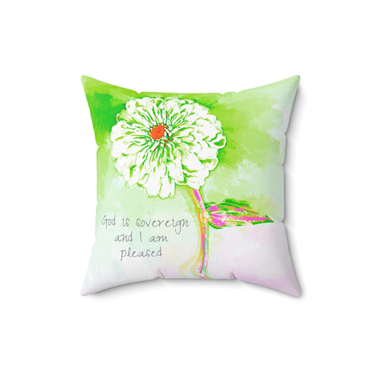 Zinnia Quiet Reflection Spun Polyester Square Pillow in Green, "God is sovereign and I am pleased"