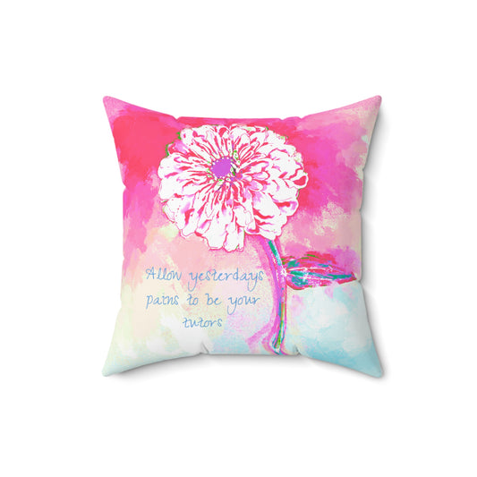 Zinnia Quiet Reflection Spun Polyester Square Pillow, Pink, "Allow yesterday's pains to be your tutors"